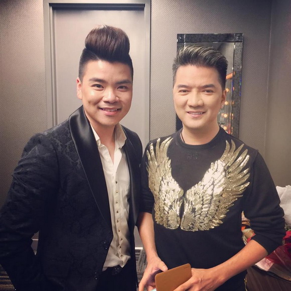 Tân Hy Khánh có dịp hội ngộ 'Ông hoàng nhạc việt' Mr Đàm trong chương trình 'Xuân yêu thương' trên sân khấu của Cosmopolitan tại Las Vegas, Hoa Kỳ.
