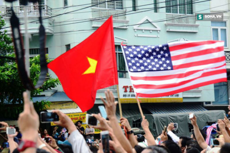 Hình ảnh lá cờ Việt Nam và Mỹ tung bay trong gió là cách mà người dân Sài thành chào đón ông chủ Nhà Trắng.