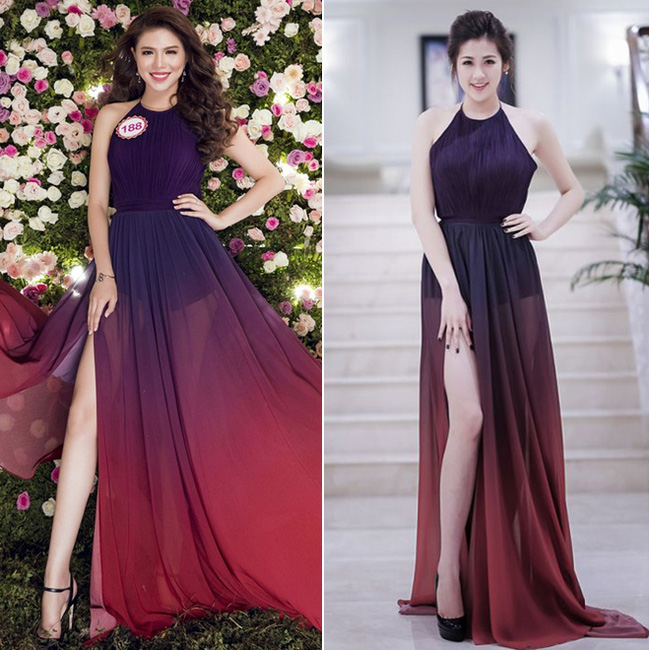 Cát Nhiên là một người đẹp nổi trội với khả năng tiếng Anh khá "đỉnh". Điều thú vị là thí sinh này đã "diện lại" chiếc đầm xẻ tà màu ombre đẹp mắt vốn đã được Á hậu Tú Anh mặc từ tận năm ngoái.