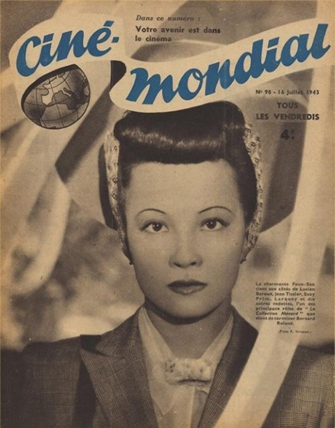 Nữ diễn viên Phụng San trên bìa tạp chí Ciné - Mondial của Pháp, phát hành ngày 16/7/1943.