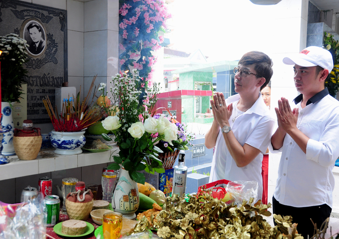 Diễn viên Lý Hùng bồi hồi bên mộ bạn. Anh kể lại những kỷ niệm của mình với Lê Công cách đây hơn 20 năm.