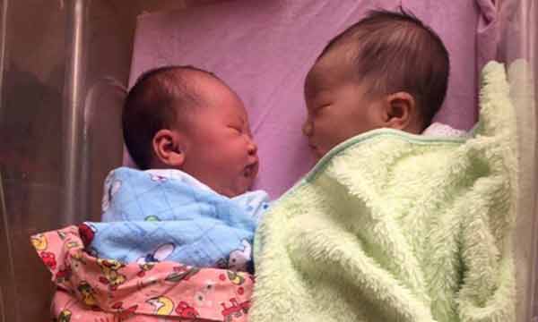 Suốt chín tháng mang thai, hai chị em cùng đi khám, ăn uống, trao đổi các thông tin với nhau, nên quãng thời gian này với họ qua nhanh chóng. 17 giờ ngày 19/10/2016, Qian Qian sinh được một bé trai khỏe mạnh, thì đến 22h cùng ngày, bé gái của cô em Jing Jing cũng chào đời suôn sẻ. Hai bé sơ sinh cùng có cân nặng 3,3kg. Ai cũng ngạc nhiên về sự trùng hợp kỳ lạ này.