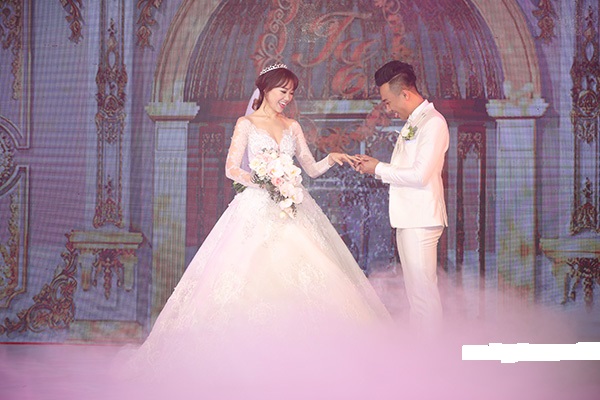 Hari Won cũng tiết lộ, chuyện đám cưới đều do một tay Trấn Thành lên ý tưởng, chuẩn bị. "Điều khiến tôi cảm động nhất từ trước đến giờ là ngày đám cưới tôi không chuẩn bị gì hết, tất cả mọi thứ do anh ấy tự chuẩn bị. Anh ấy thậm chí không tiết lộ tiết mục kết hôn như thế nào, thiết kế buổi tiệc ra sao. Anh Thành tự lên ý tưởng, tôi hỏi nhiều lần mà không nói một chút gì. Ngày đó tôi giống như người khách mời xuất hiện thôi nhưng mà không ngờ đẹp như vậy. Anh Thành giỏi, phải công nhận là giỏi", Hari dành những lời khen cho chồng mình.