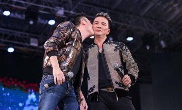 Sau khi Đàm Vĩnh Hưng công khai chuyện mẹ vay nợ, Dương Triệu Vũ không ngần ngại thể hiện nụ hôn má để an ủi với đàn anh
