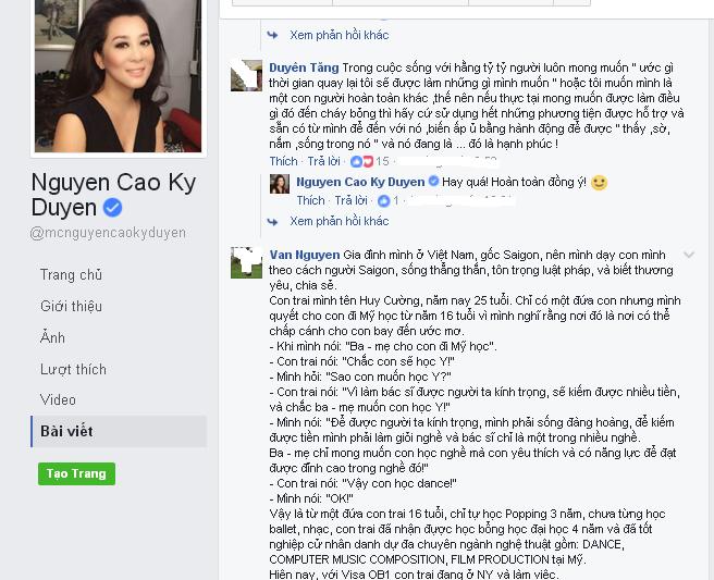 Mở đầu ḍng chia sẻ MC Kỳ Duyên viết: "Đối với tôi một đứa con sinh ra không phải đến "từ" ḿnh mà nó là một linh hồn đă hiện hữu từ muôn kiếp trước chỉ bước vào đời "qua" ḿnh. V́ vậy theo tôi nghĩ, bổn phận cao cả nhất của bậc làm cha mẹ là ḿnh trở thành một công cụ hổ trợ, giúp cho con cái đạt được giấc mơ của nó (không phải của ḿnh) trong cuộc đời này".