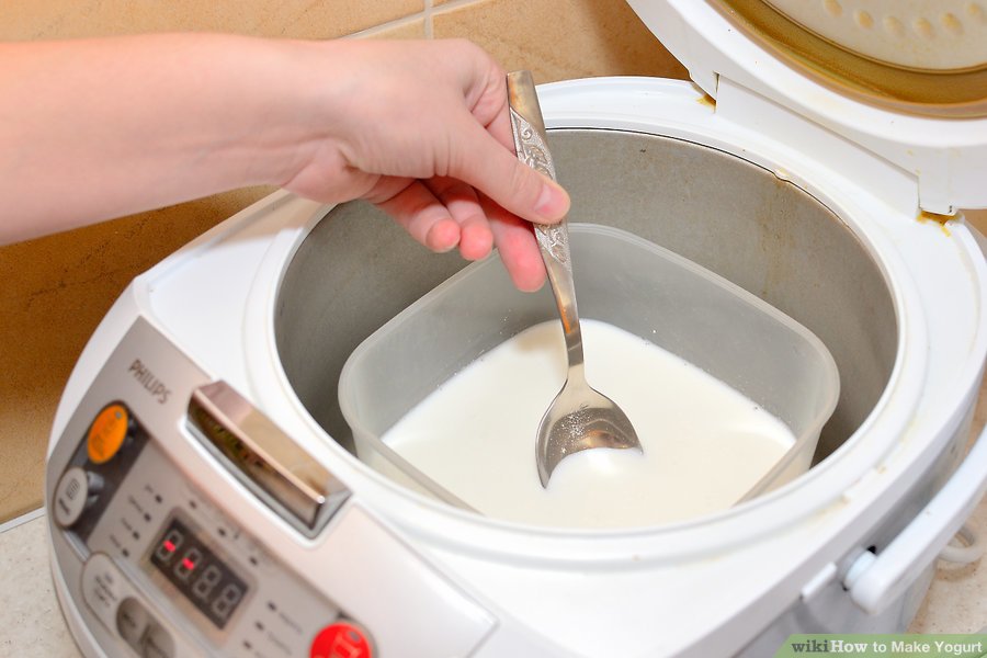 - Đổ sữa ra âu và ủ để sữa chua lên men. Cho âu sữa vào nồi cơm điện và để ở chế độ giữ ấm khoảng 40ºC thì sữa chua sẽ hoàn thành nhanh nhất. Không nên di chuyển nhiều để tránh làm sữa long chân.
