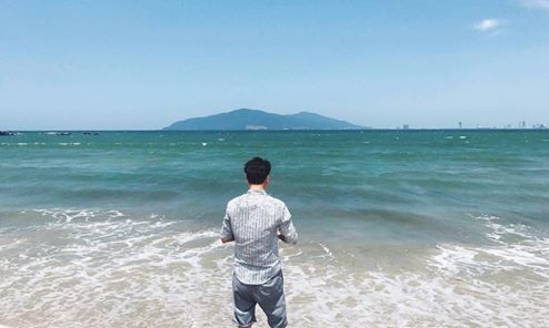 Không chỉ có Đặng Thu Thảo mà doanh nhân Trung Tín cũng chia sẻ bức hình chụp từ phía sau khi anh đứng trước biển Nam Ô xanh trong.