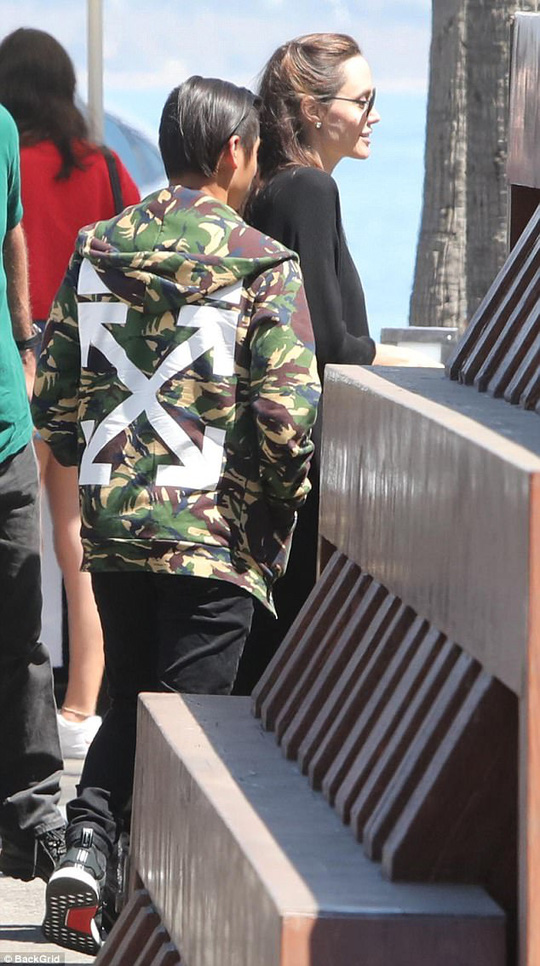 Angelina Jolie và con trai nuôi Pax Thiên, 13 tuổi, cùng thưởng thức bữa trưa tại nhà hàng Pacific Ocean ở Los Angeles - Mỹ.