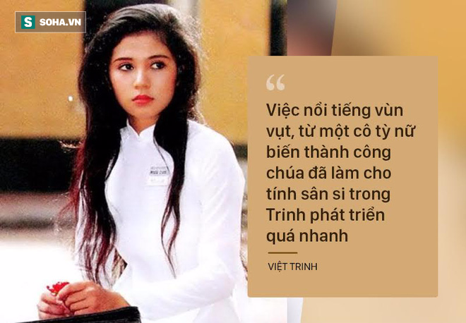 Việt Trinh nổi tiếng nhanh và im hơi lặng tiếng trong Vbiz. Khi người đẹp có tên tuổi, cô tự chia sẻ đã chèn ép và trả thù người khác. "Người đẹp Tây Đô" đã gặp phải quả báo cho chính bản thân mình. Việc nổi tiếng vùn vụt, từ một cô tỳ nữ biến thành công chúa đã làm cho tính sân si trong tôi phát triển quá nhanh...", Việt Trinh chia sẻ.