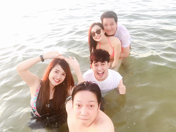 Trường Giang tung tăng dắt Nhã Phương đi bơi không còn phải dè chừng như trước nữa. Cặp đôi dính tin đồn tình cảm sau khi hợp tác chung trong phim điện ảnh 49 ngày. Suốt thời gian quảng bá dự án, cả hai 'dính' lấy nhau như hình với bóng.