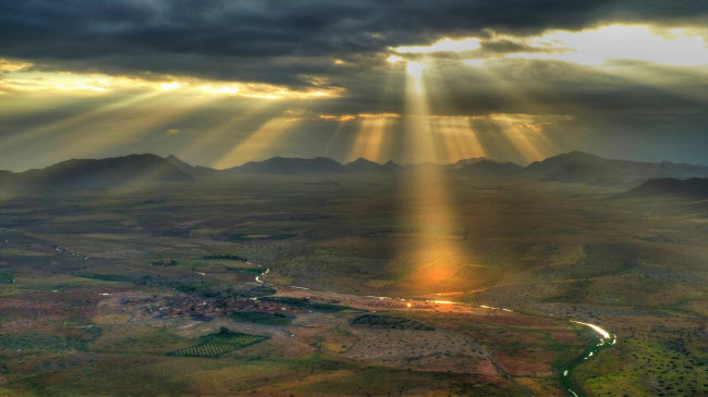 Những tia nắng ban mai chiếu xuống ngôi làng nhỏ ở Berber, Ma-rốc.