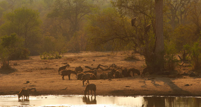 Đàn linh cẩu khởi đầu cho một ngày mới trong vườn quốc gia Kruger, Nam Phi.