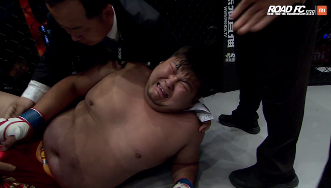 Tại sự kiện võ thuật sự kiện Road FC 39, một trận đấu chỉ mới diễn ra 10 giây đã phải dừng lại. Nguyên nhân bởi 1 cú đá trúng ngay chỗ hiểm làm một võ sĩ nằm gục. Ngay lập tức các nhân viên y tế đã có mặt, còn chủ nhân của cú đá thì có vẻ khá hoảng hốt.