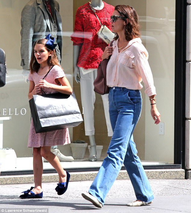 Ngày 15/6 vừa rồi, Suri Cruise lọt vào ống kính của giới săn tin khi đi mua sắm cùng mẹ tại New York. Cô bé diện chiếc áy màu hồng dịu dàng và giúp mẹ xách đồ. Suri rất nhanh nhẹn và hoạt bát. Bên cạnh, Katie diện quần jeans ống rộng khoe dáng vóc thanh thoát của mình. Nữ diễn viên 38 tuổi hầu như không trang điểm.