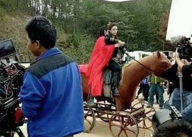 Ngay cả cảnh cưỡi ngựa truy phong của Sở Kiều cũng là hình ảnh “gây cười”. Đoàn phim sử dụng ngựa mô hình gắn xe bốn bánh để tạo ra những bước di chuyển rất nhanh trên cỏ.