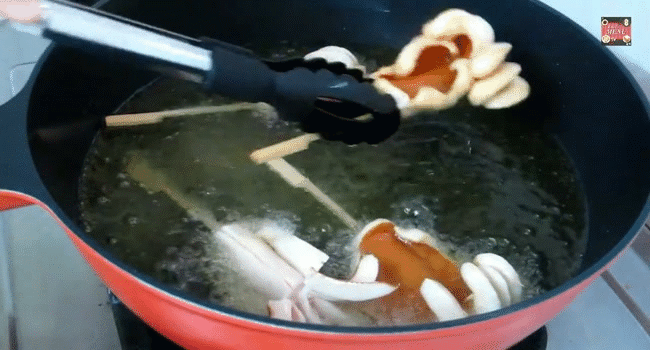 - Giờ thì thả chúng vào chảo dầu đã đun sôi và chờ chín là xong.