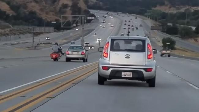 Một tai nạn liên hoàn xảy ra trên đường cao tốc ở bang California nước Mỹ. Lý do là người lái xe máy giận dữ thò chân đá chiếc xe hơi. Vụ việc xảy ra ngày 22.6 trên đường 14 Freeway, Santa Clarita, khiến một người bị thương phải nhập viện.