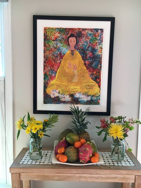 Dù ở bên trời Tây nhưng Ngọc Khánh vẫn sử dụng một góc nhà để xây dựng không gian tín ngưỡng rất ‘Việt Nam’.