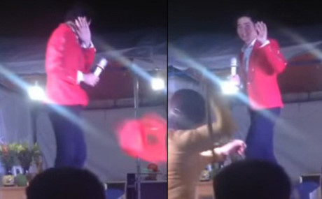 Vừa qua, cộng đồng mạng xôn xao truyền tay nhau chia sẻ một đoạn clip ghi lại cảnh nghệ sĩ Hoài Linh đang công bố giải thưởng tại một sự kiện ở Quảng Ngãi thì bên dưới có người ném đồ lên sân khấu.