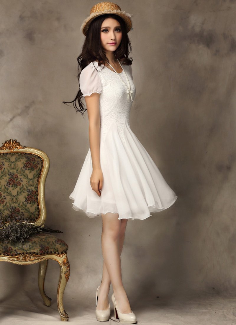 Đầm trắng tinh khôi là một trong những trang phục không thể thiếu với bất cứ cô nàng nào. Chiếc váy trắng đơn giản không kém phần thanh lịch , dịu dàng. Giày cao gót , phụ kiện màu sắc giúp set đồ thêm hoàn hảo hơn.