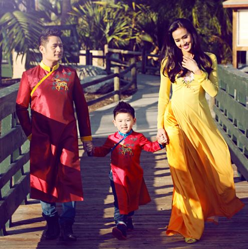 Tháng 2.2015, Bằng Kiều thực hiện bộ ảnh áo dài cùng Dương Mỹ Linh và cậu con út Kenzi. Trong ảnh, Hoa hậu Phụ nữ qua ảnh 2006 bế ẵm, nô đùa vui vẻ bên bé Kenzi."Anh Bầu" cũng tiết lộ, không chỉ Kenzi mà cả hai cậu con trai lớn của anh đều rất yêu quư Dương Mỹ Linh.