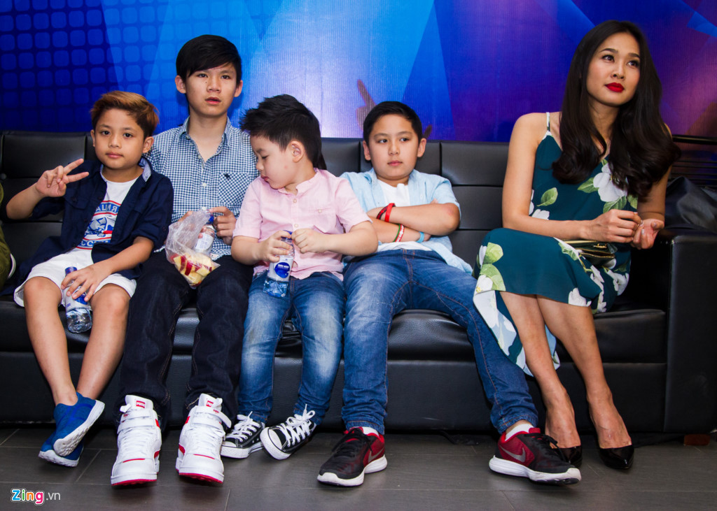 Dương Mỹ Linh đưa ba quư tử của Bằng Kiều tới trường quay cổ vũ bố tại chương tŕnh Vietnam Idol vào 8.7.2016. (Nguồn: ****).