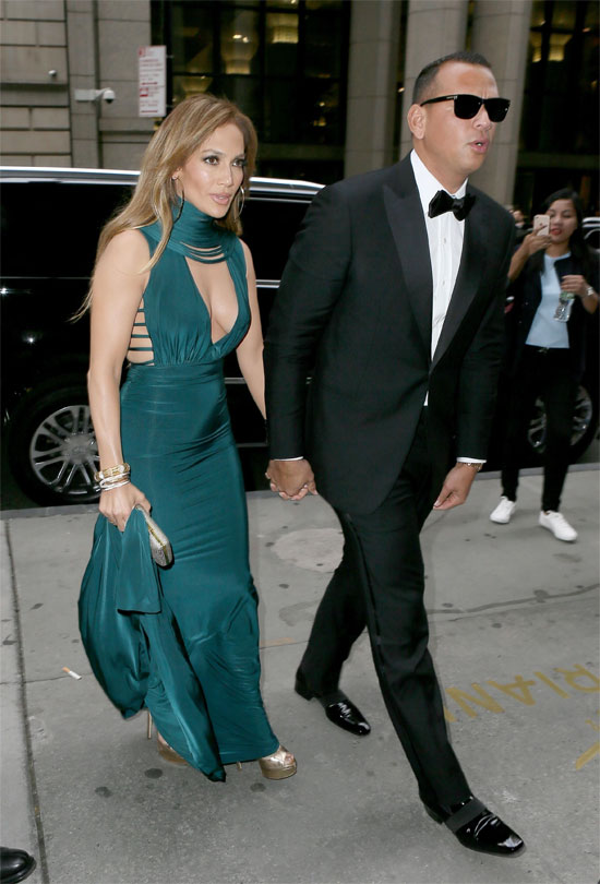 Nữ ca sĩ Jennifer Lopez tay trong tay cùng bạn trai kém 6 tuổi đi dự đám cưới. Dù cô hơn bạn trai nhiều tuổi nhưng nhìn hai người rất đẹp đôi. Jennifer Lopez quyến rũ, gợi cảm trong bộ đầm đuôi cá, xẻ táo bạo phần ngực.