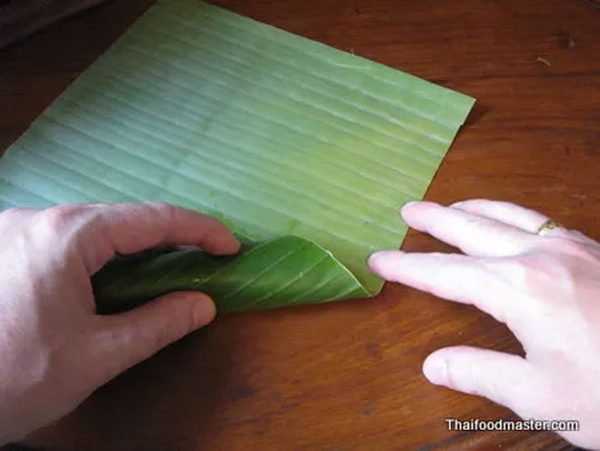 Nếu không thể tìm được lá chuối, bạn có thể dụng bao nilon hoặc màng nhựa mỏng để gói nem.