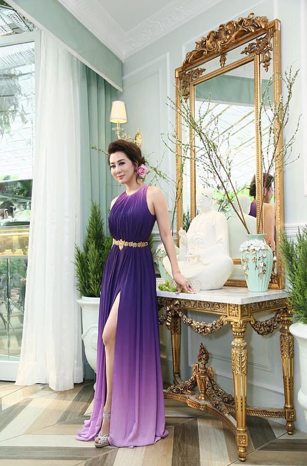 Trong chương trình này, nữ MC tuổi U60 diện bộ váy bó sát khoe khéo vóc dáng thon thả cùng đôi chân dài miên man.