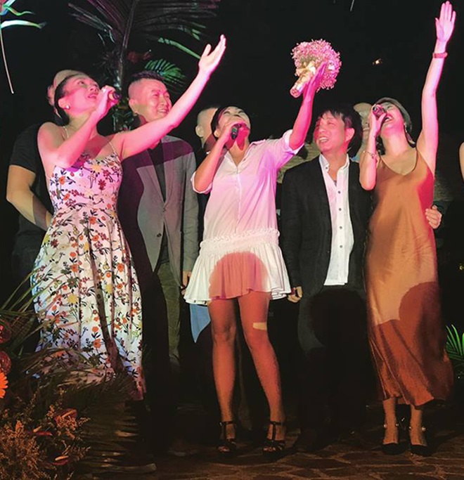 Không gian tiệc cưới ấm cúng, thân tình và hạn chế khách mời nên các sao Việt đã rất thoải mái lên sân khấu biểu diễn góp vui trong buổi tiệc. Mỹ Tâm, Phương Thanh là hai ca sĩ dẫn đầu. Cả hai cùng song ca Ước gì sau đó kêu gọi thêm Phạm Anh Khoa, Hari Won, Viết Thanh, Pha Lê...