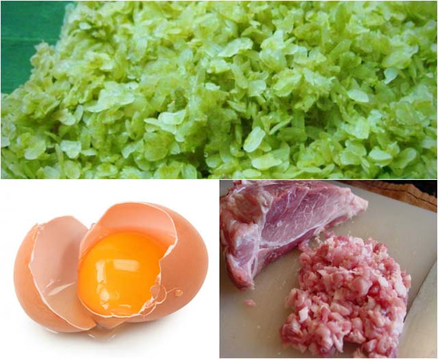 - Bước 1: Thịt vai rửa sạch, băm nhỏ. Sau đó cho vào bát tô cùng trứng và một chút gia vị, hạt tiêu khuấy đều lên.