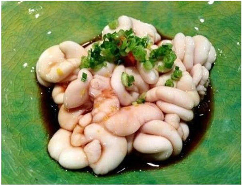 Món ăn này có vẻ ngoài dễ khiến người ăn cảm thấy buồn nôn, nhưng khi đưa vào miệng lại có vị béo, thơm và trơn như bơ. Người Nhật gọi món ăn này là “Em bé màu trắng”.