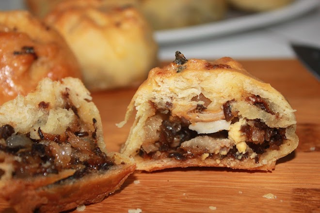 Lớp vỏ bánh gối vàng rộm, giòn tan, cắn một miếng đã thấy nhân thịt ngập trong miệng. Bánh có nhân ngon, thơm, thường ăn kèm với chút nước mắm chấm chua ngọt.