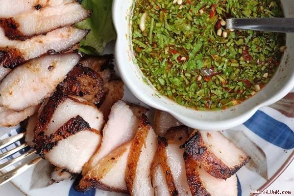 Thịt heo được tẩm ướp kĩ càng, khi áp chảo lên phần mỡ tự nhiên trong thịt tràn ra, làm mềm phần thịt ăn béo ngọt nhẹ nhàng rất ngon mà không hề ngán! Không những thế, điểm đặc trưng của món thịt áp chảo này còn là ở hỗn hợp sốt kiểu Thái trông vô cùng hút mắt với vị chua chua, cay cay xen lẫn cái đậm đà, mới nghĩ đến thôi đã thấy thèm ơi là thèm!