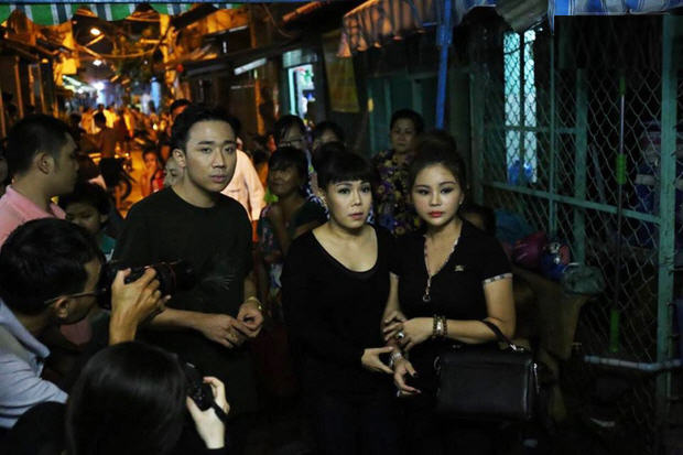 Đi cùng Trấn Thành là nghệ sĩ Việt Hương và nghệ sĩ Lê Giang. Ngay khi vừa xuất hiện, Trấn Thành đã lập tức thu hút sự hiếu kỳ của những người dân xung quanh. Rất đông người dân đã vây kín lối đi khiến các nghệ sĩ tới thăm viếng di chuyển khá khó khăn.