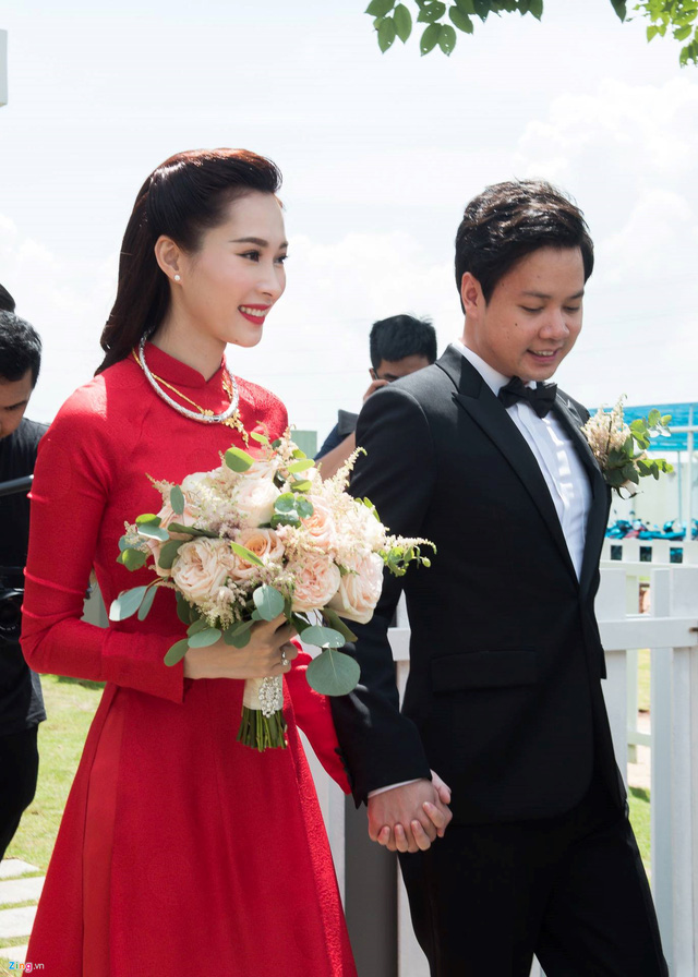 Hoa hậu Đặng Thu Thảo nắm chặt tay người chồng Trung Tín về nhà chồng.