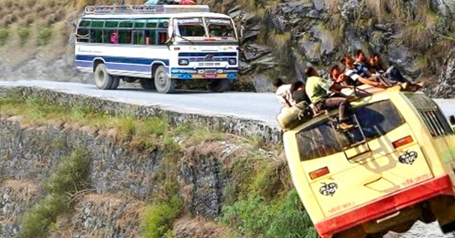 Bất chấp nguy hiểm rình rập, những con đường núi ở châu Á luôn tấp nập và người dân địa phương đôi khi chỉ có duy nhất một lựa chọn để di chuyển từ điểm A tới điểm B. Họ đã quá quen với những con đường trên núi cao và thậm chí còn dám ngồi trên nóc xe bus.