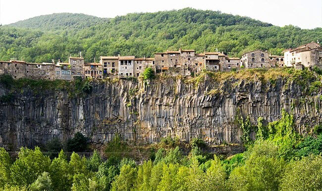 Ngôi làng ở tỉnh Girona nằm trên vách đá hình thành từ dung nham núi lửa cách đây hàng nghìn năm. Vách núi này có độ cao 50m và kéo dài hơn 1km. Ngôi làng là nơi sinh sống của khoảng 1.000 người.