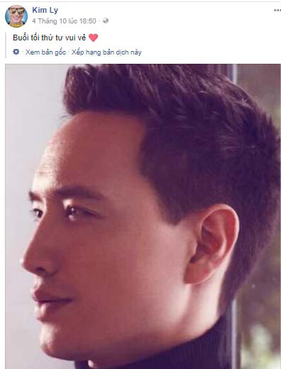 Ngay ngày hôm sau, trên trang cá nhân của Kim Lý ngày 4.10 anh viết status với lời nhắn nhủ: “Buổi tối thứ 4 vui vẻ” kèm với dòng trạng thái đó là bức hình chân dung của anh với khuôn mặt buồn, ánh mắt nhìn xa xăm.