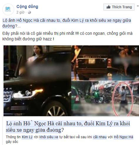 Mới đây trên mạng xôn xao bàn tán sự việc Hồ Ngọc Hà và Kim Lý cãi nhau khiến dân mạng hiếu kỳ chú ý. Theo đó đồng loạt trên các trang mạng xã hội đăng tải thông tin cặp đôi nam nữ trong MV Cả một trời thương nhớ đang ngồi nói chuyện trong một chiếc siêu xe thì bất ngờ Hồ Ngọc Hà đẩy tay, sau đó xe dừng lại. Đáng chú ý là ngay sau đó Kim Lý vội vã bước ra khỏi xe dù đang ở giữa đường và tự bắt taxi đi tiếp.