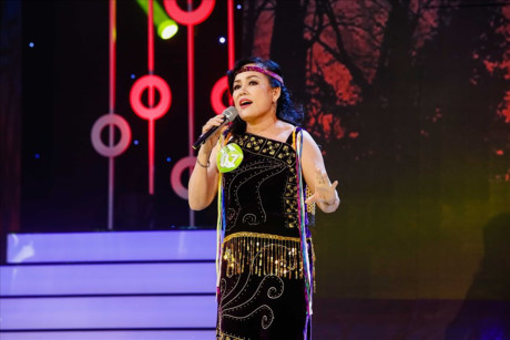 Thí sinh Nguyễn Thị Chín (53 tuổi) duyên dáng trong ca khúc mang âm hưởng dân ca Xa khơi (Nguyễn Tài Tuệ) ở lượt thi đơn. Và sau đó cô sẽ song ca cùng ca sĩ Quốc Đại ca khúc Tình ta biển bạc đồng xanh (Hoàng Sông Hương).
