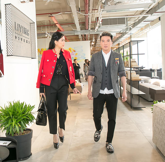 Sáng 19/10, Hồ Ngọc Hà và Kim Lý xuất hiện tại buổi khai trương showroom nội thất lớn nhất Việt Nam ở quận Nam Từ Liêm, Hà Nội. Hồ Ngọc Hà mặc áo hoa, quần đen, còn Kim Lý diện nguyên 'cây' đen lịch lãm.