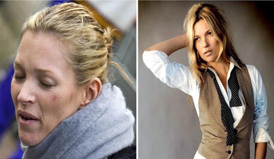 Không chỉ nhiều nếp nhăn, làn da của Kate Moss còn xuất hiện rất nhiều sẹo do mụn để lại.
