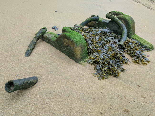 Những dấu hiệu của sự sống trước đây trên đảo vẫn hiện diện khắp nơi, bao gồm chiếc thùng rác này.