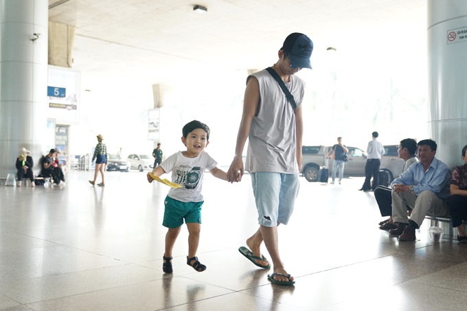 Ra phi trường từ sớm nên Phan Hiển và con trai phải đứng đợi khá lâu.