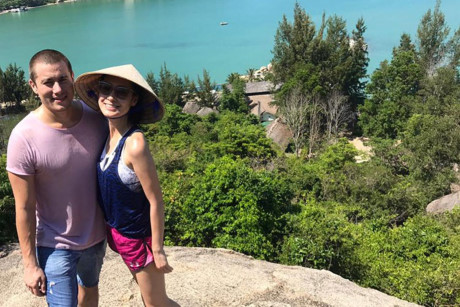Bạn trai của Kathy Uyên hiện sống ở Việt Nam. Trong ảnh, anh và nữ diễn viên tình tứ bên nhau tại Hong Kong. Ảnh: FBNV