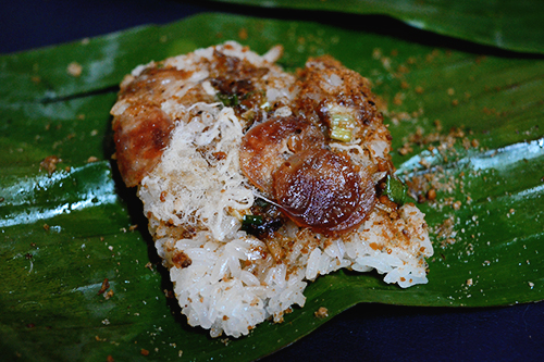 Một điểm cộng nữa là quán còn rắc thêm đậu phộng giã nhỏ, tạo vị lạ miệng vì xôi mặn ít ai sử dụng nguyên liệu này. Nước tương chan vào xôi cũng được quán pha theo công thức gia truyền. Xôi bán cho khách được gói trong lá chuối tươi, bán tới đâu xé đến đó.
