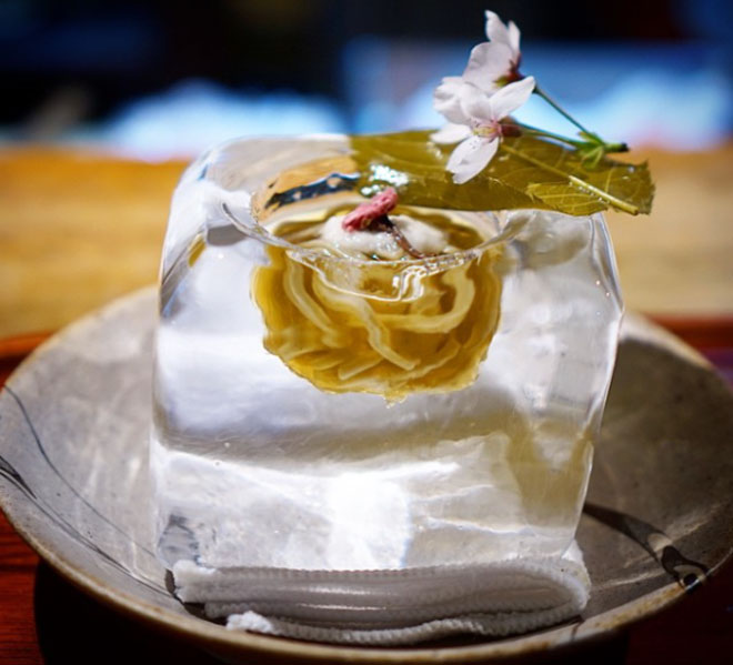 Mùa xuân, đầu bếp sẽ kết hợp mì với hoa anh đào tạo ra một mùi hương rất quyến rũ, khiến ai cũng khó mà chối từ.