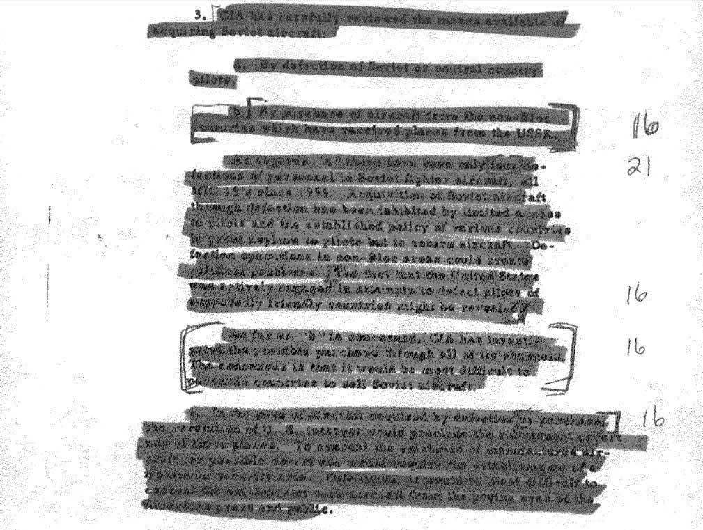 Bản ghi nhớ nêu rõ, Hội đồng An ninh quốc gia Mỹ cùng với CIA đã cân nhắc việc mua máy bay Liên Xô để thực hiện các vụ tấn công. Một loạt máy bay Liên Xô được liệt kê, gồm cả chiến đấu cơ MiG-17 và MiG-19 cũng như máy bay vận tải quân sự Il-14, theo Sputnik.