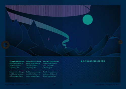 Nếu nhìn vào bên trong cuốn hộ chiếu của người dân Na Uy dưới ánh đèn UV, bạn sẽ thấy một bức tranh về cảnh Bắc Cực quang chiếu trên bầu trời, phía dưới là những dãy núi cao. Đây là bức tranh do nhóm thiết kế Neue lấy ý tưởng từ chính phong cảnh của nước này. Phần bìa của cuốn hộ chiếu có cả ba loại với ba màu khác nhau là trắng, đỏ và xanh trời. Theo Citylab, mỗi màu dành cho một nhóm, trắng cho người nhập cư, đỏ cho công dân của Na Uy và xanh trời cho các nhân viên ngoại giao.